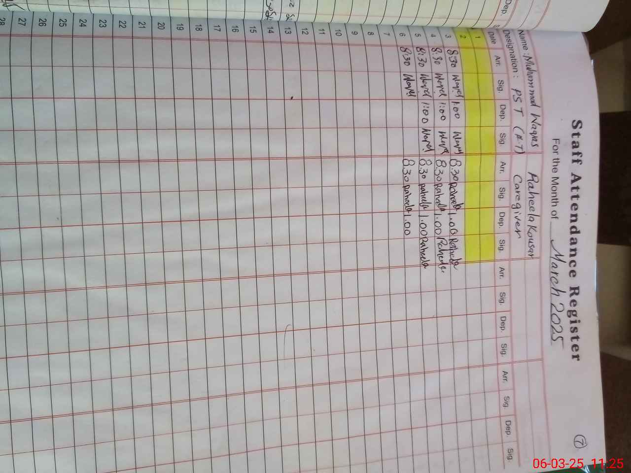 | CNIC | Full Name | Designation | R/C | Absence During Last Calender Month |