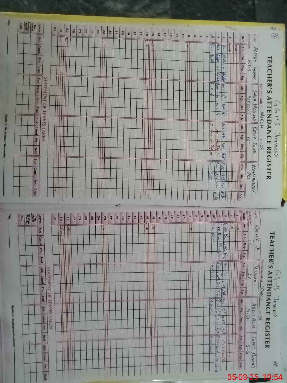 | 35**** | Ra**** Ba**** | PST | Regular | 0 | 0 | 0 | 0 | 0 | 0 | 0 | 0 | 0 | Exam Duty |