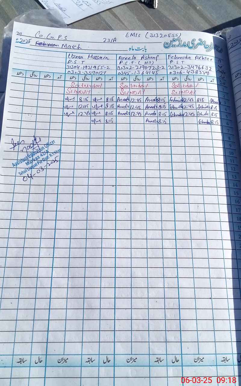 | District: RAHIMYAR KHAN | Tehsil: LIAQATPUR | Markaz: 42/A -FEMALE | Level: Primary | |