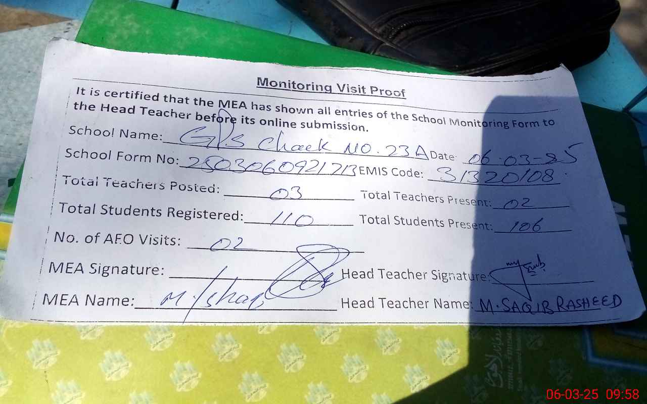 | EMIS Code: 31320108 | Name of School: GPS CHAK 23 A | |||