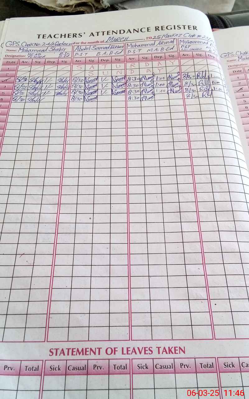 | EMIS Code: 31320149 | Name of School: GPS 24/A QADEEM | |||