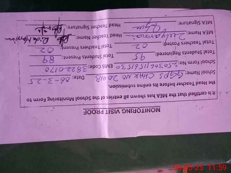 | EMIS Code: 38220170 | Name of School: GGPS CHAK NO 20 MB | |||