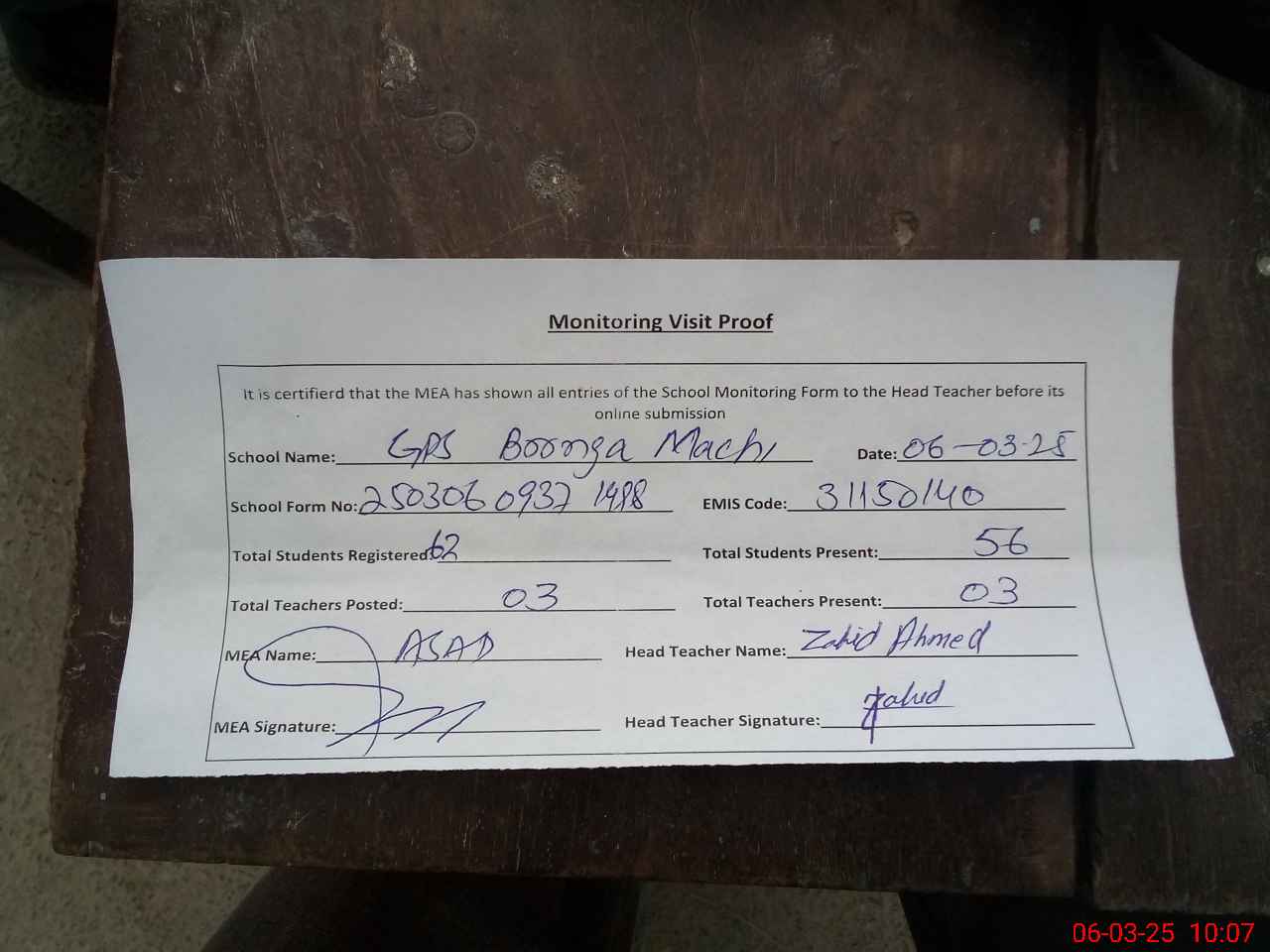 | EMIS Code: 31150140 | Name of School: GPS BUNGA MACHI | |||