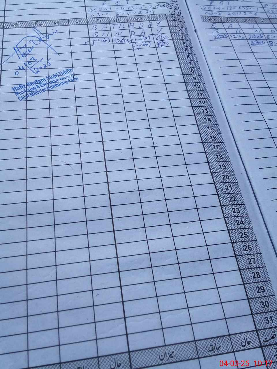 | Name: Mu**** Uz**** Designation: (School Headmaster's/Headmistress's) Pst Phone/Cell Number: 03**** |