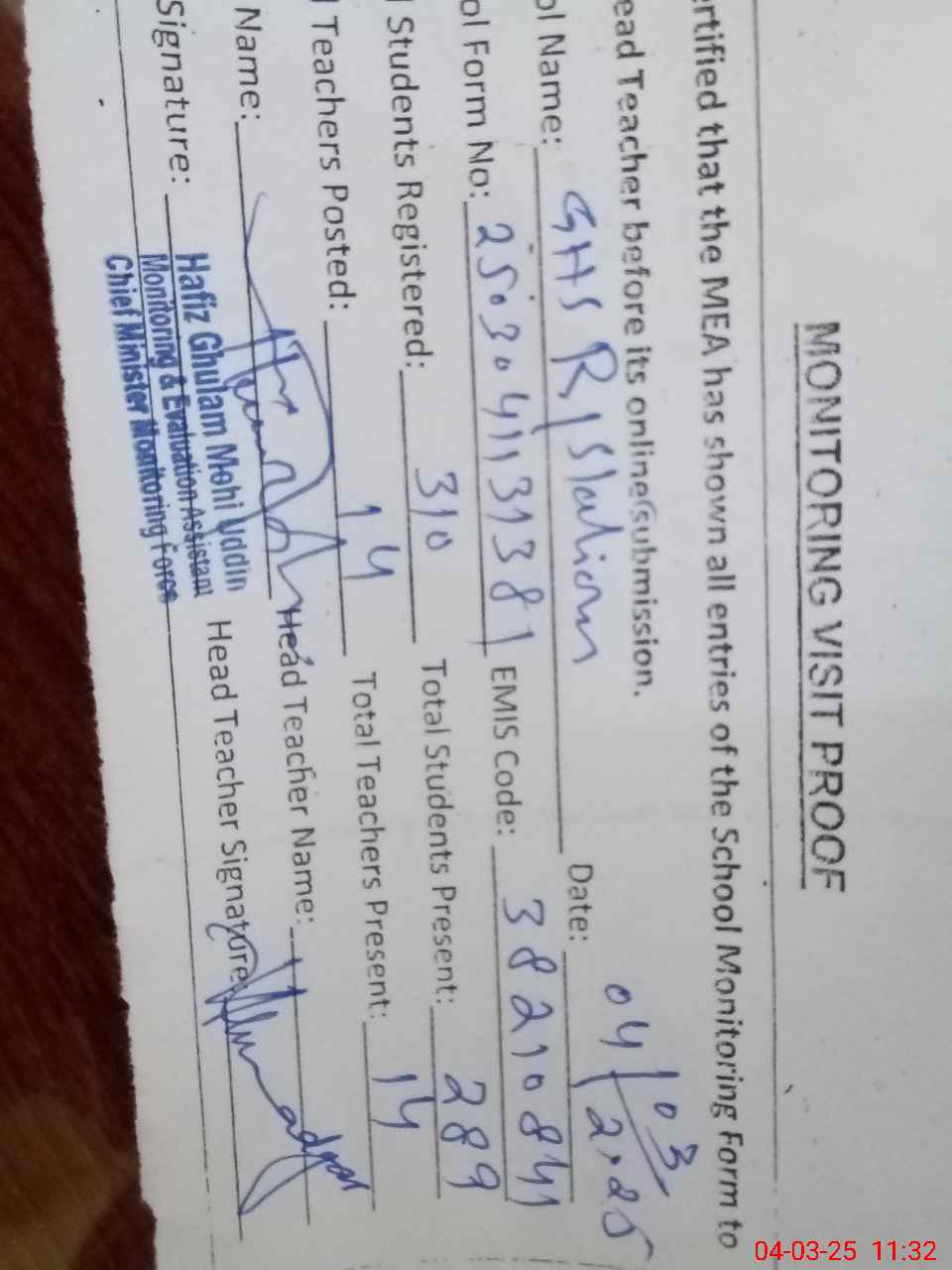 | EMIS Code: 38210841 | Name of School: GHS RAILWAY STATION MITHA TAWANA | |||