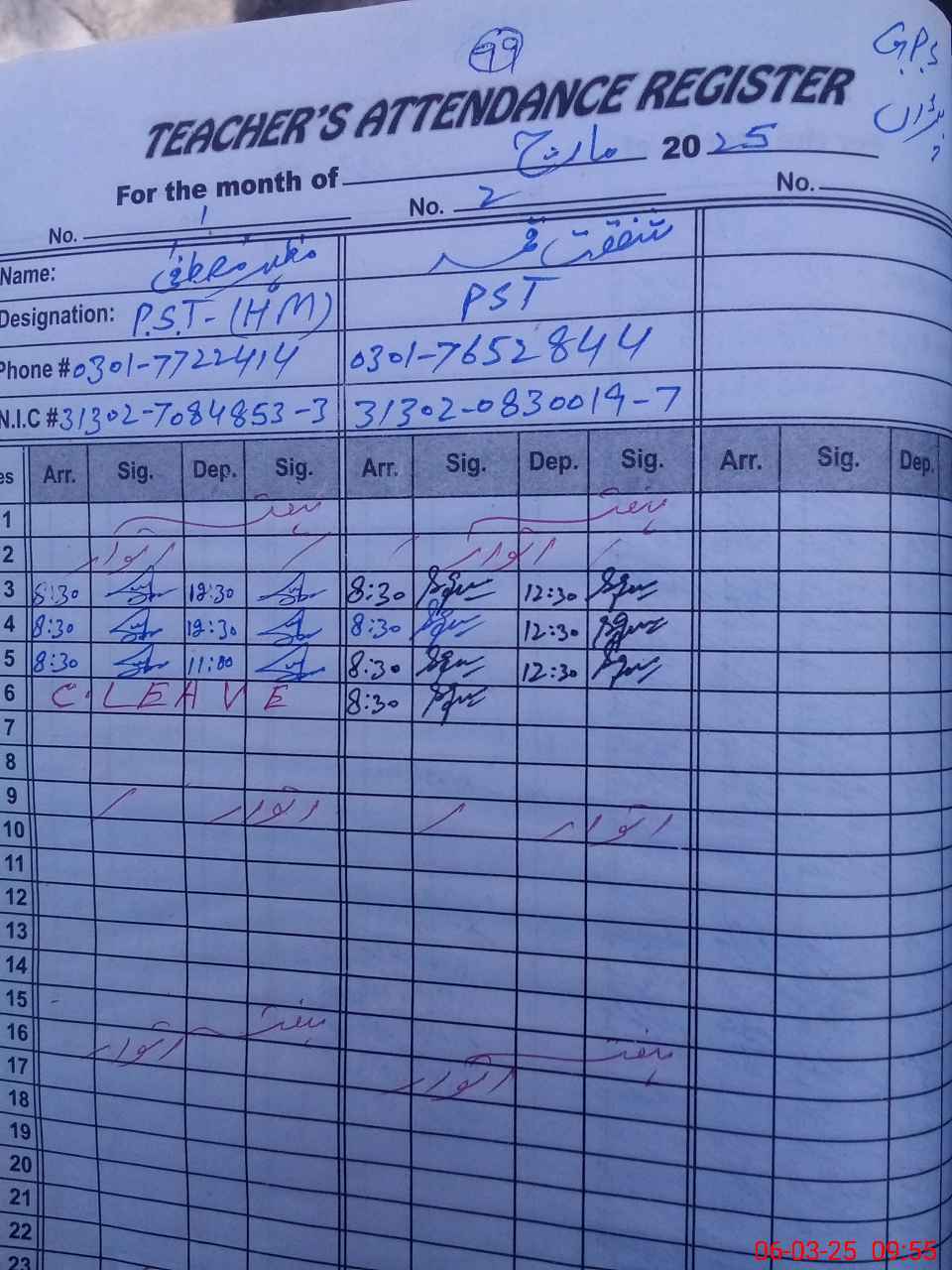 | Name: MA**** MU**** Designation: (School Headmaster's/Headmistress's) PST Phone/Cell Number: 03**** |