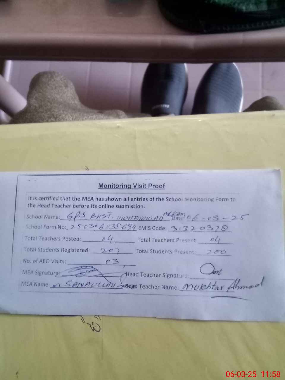 | EMIS Code: 31320378 | Name of School: GPS BASTI MUHAMMAD AKRAM | |||