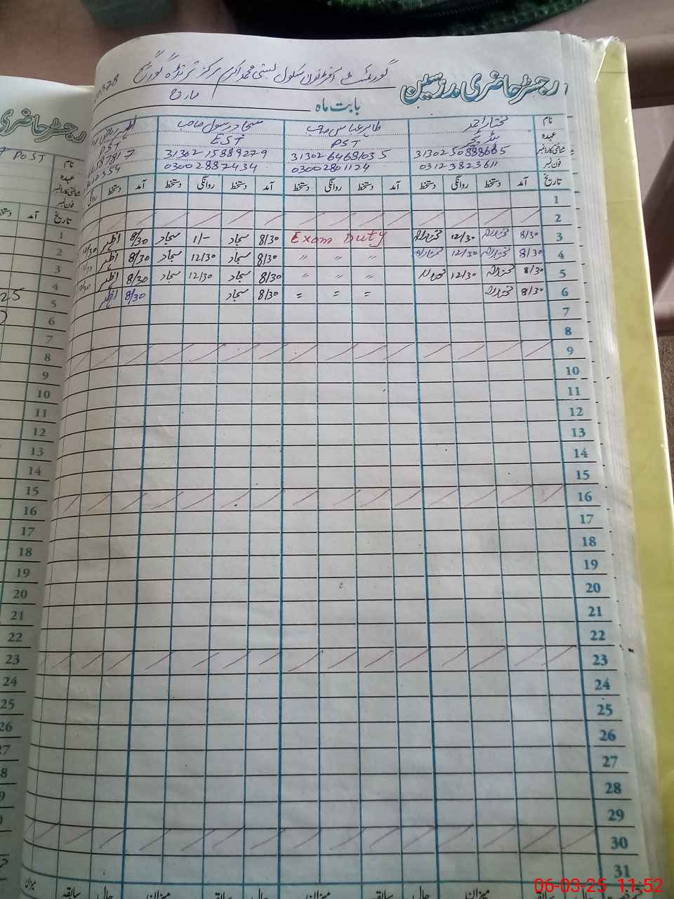 | Name: MU**** AH**** Designation: (School Headmaster's/Headmistress's) PST Phone/Cell Number: 03**** |