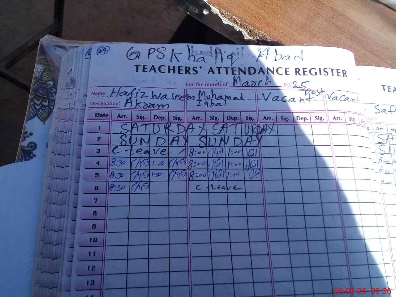 | Name: Ha**** Wa**** Ak**** Designation: (School Headmaster's/Headmistress's) PST Phone/Cell Number: 03**** |