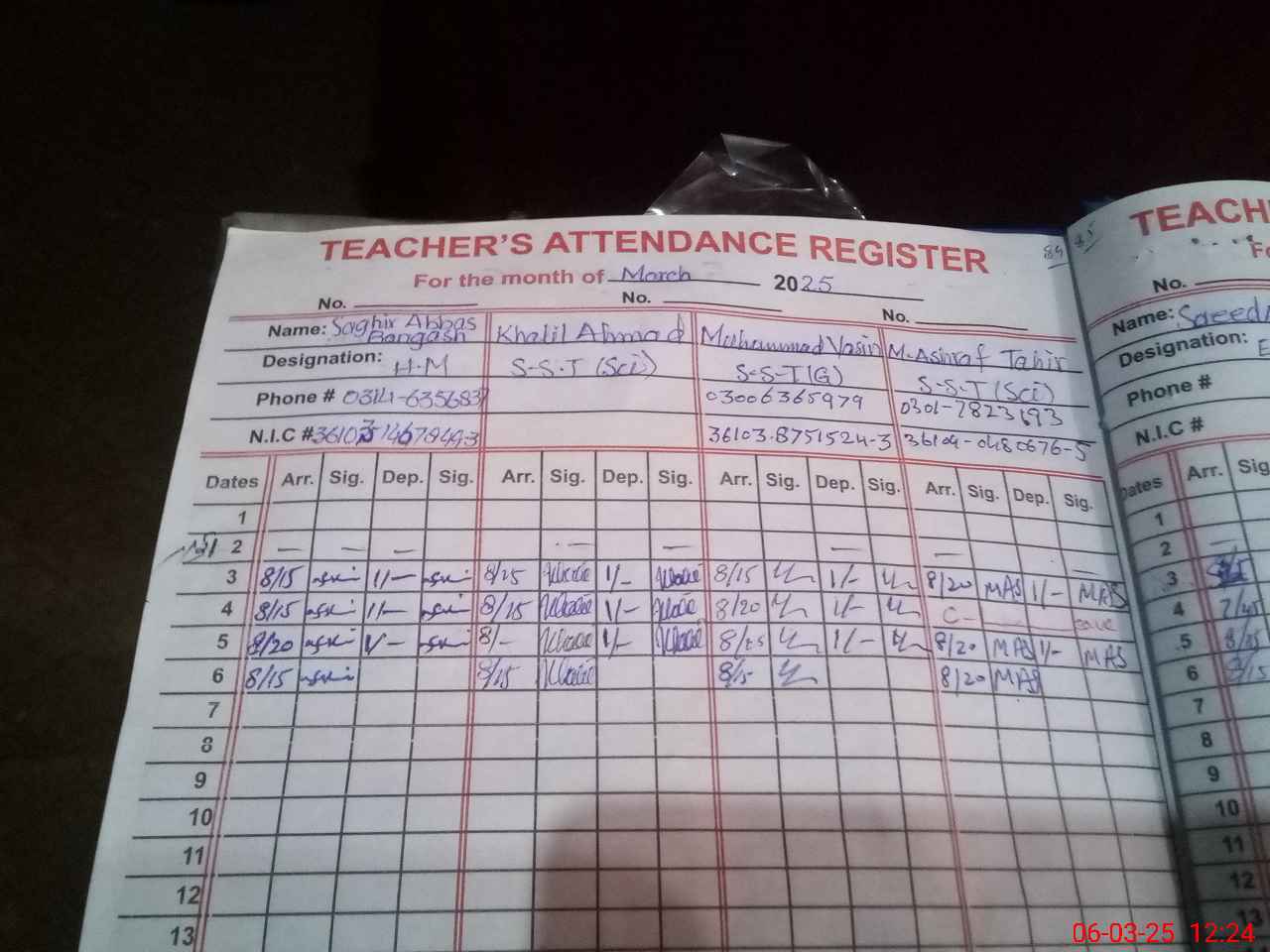 | CNIC | Full Name | Designation | R/C | Absence during last cal. month |