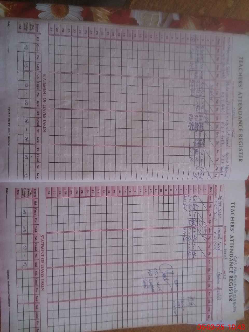 | 32**** | Mu**** Sa**** | PST | Regular | 0 | 0 | 0 | 0 | 0 | 0 | 0 | 0 | 0 | Exam Duty |