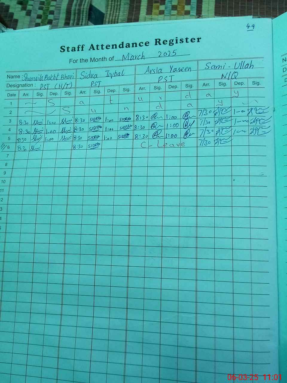| Name: Sh**** Ba**** Bh**** Designation: (School Headmaster's/Headmistress's) PST Phone/Cell Number: 03**** |