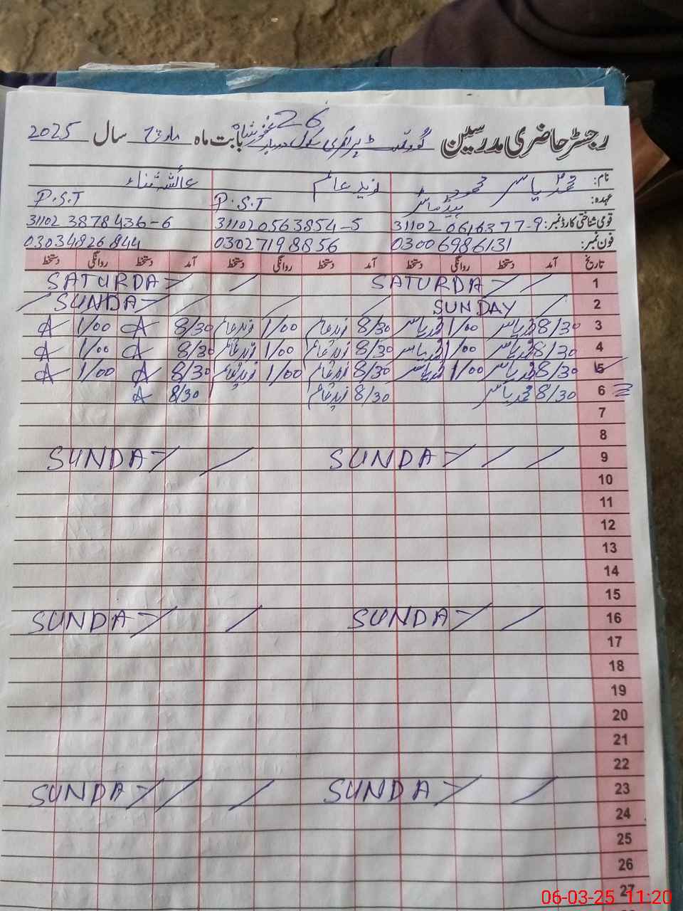 | Name: Mu**** Ya**** Designation: (School Headmaster's/Headmistress's) PST Phone/Cell Number: 03**** |