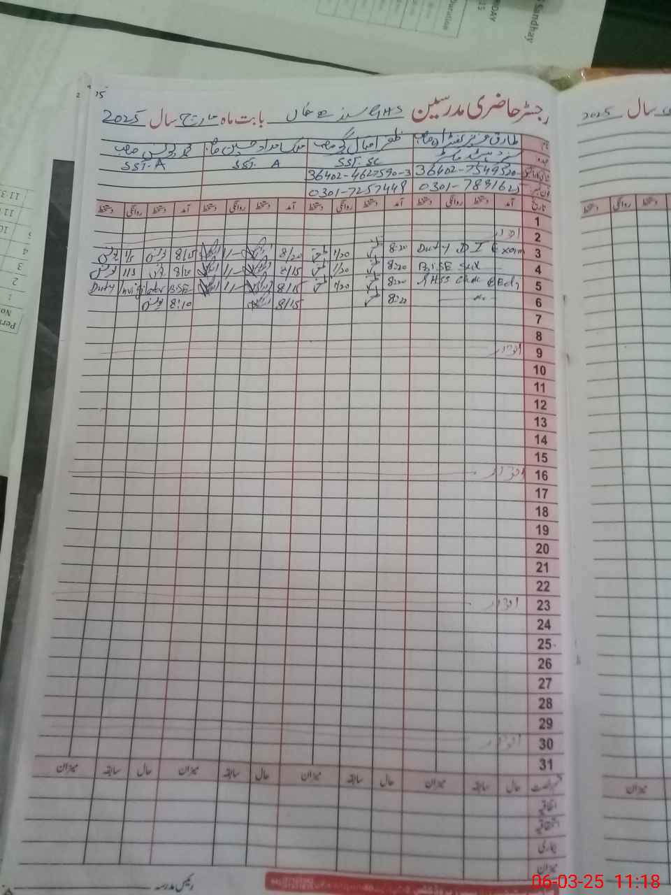 | 36**** | Ta**** Az**** | Sr. Headmaster | Regular | 0 | 0 | 0 | 0 | 0 | 0 | 0 | 0 | 0 | Exam Duty |