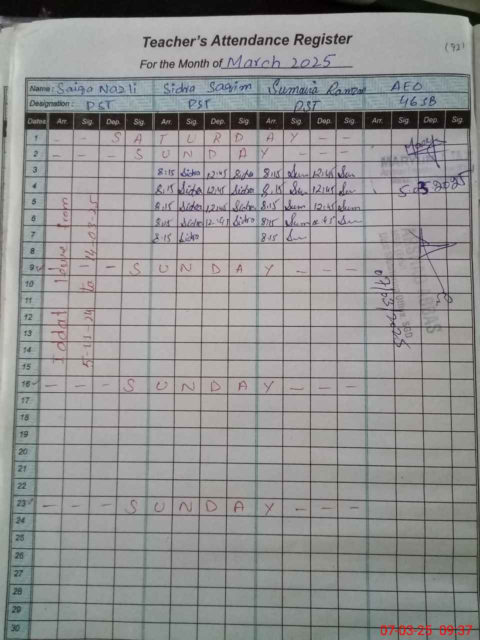 | Name: Si**** Sa**** Designation: (School Headmaster's/Headmistress's) PST Phone/Cell Number: 03**** |