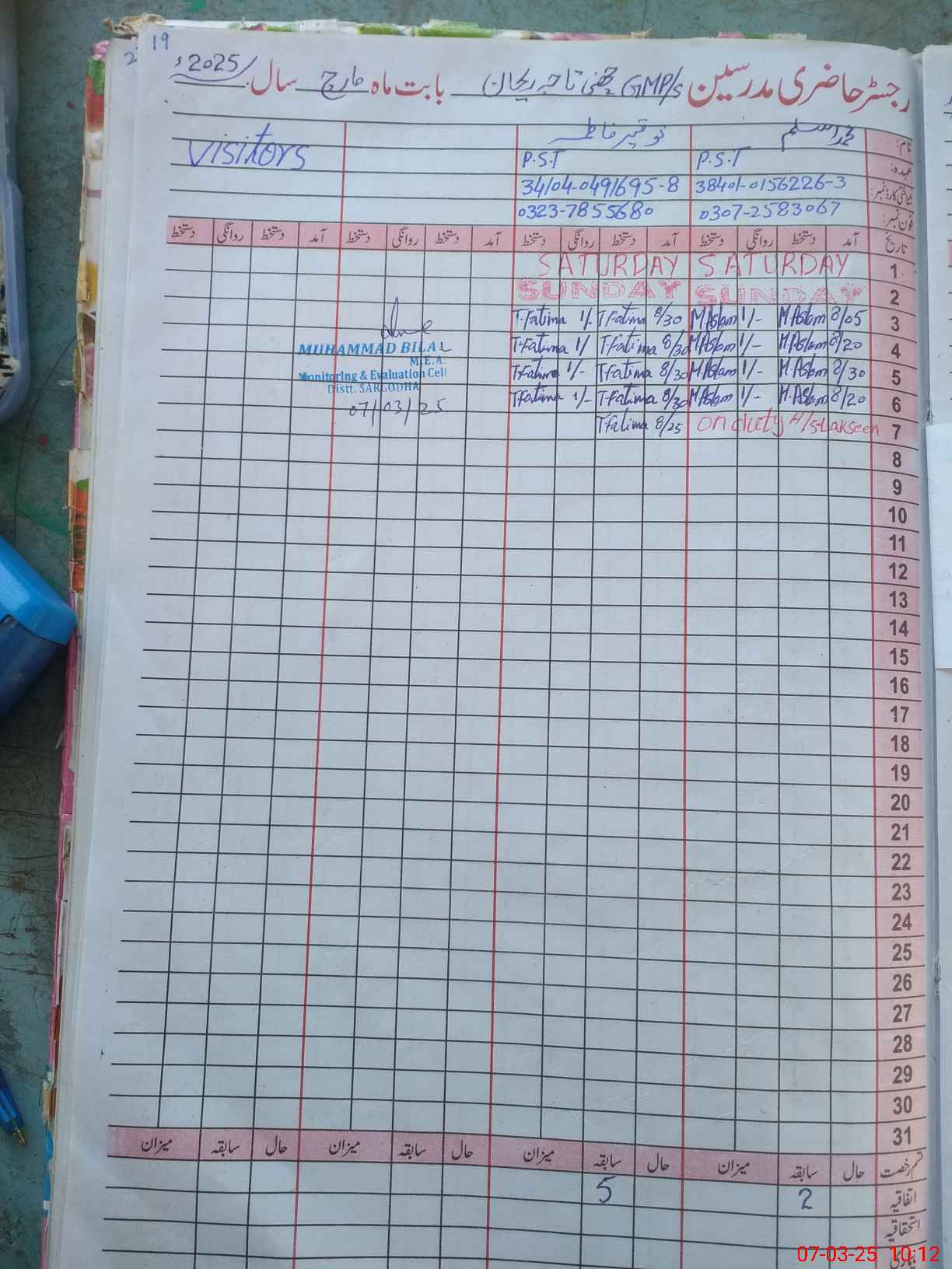 | Name: Mu**** As**** Designation: (School Headmaster's/Headmistress's) P S T Phone/Cell Number: 03**** |