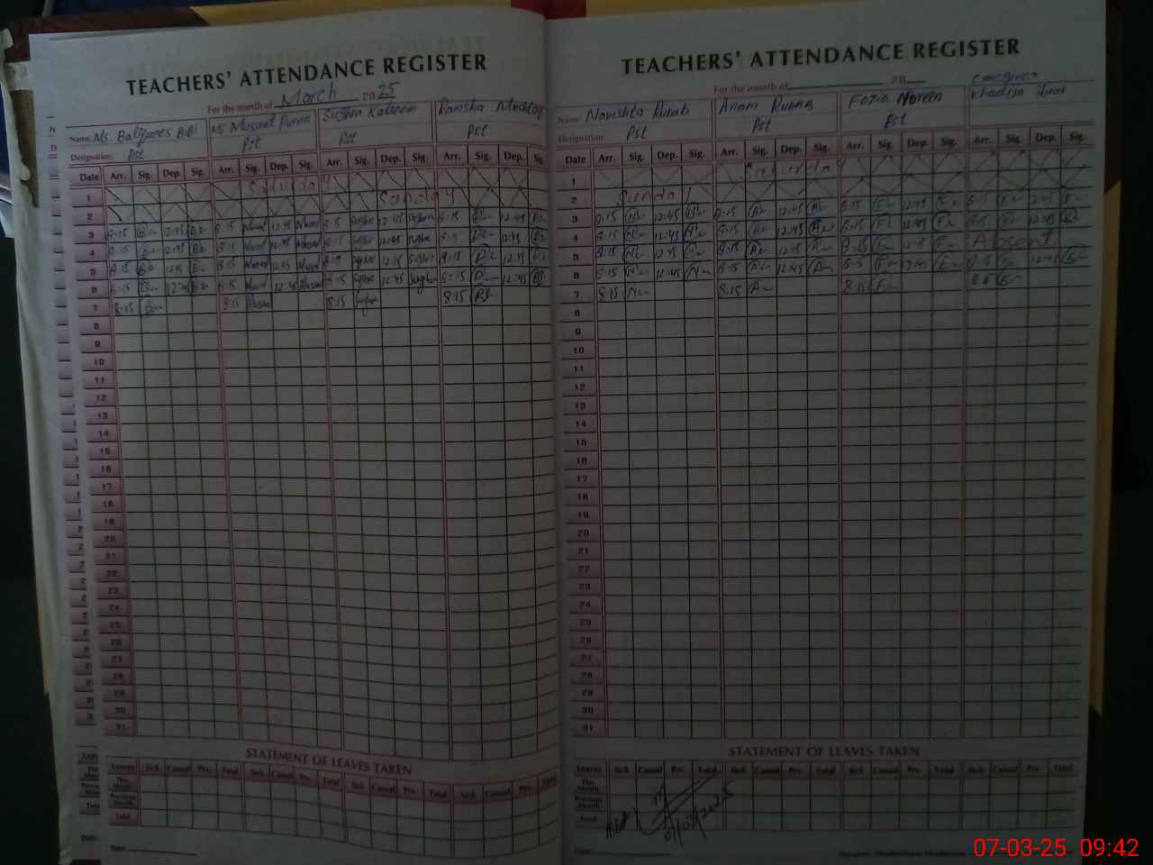 | Attendance Register | Head Teacher | MEA with School | Visit Proof |