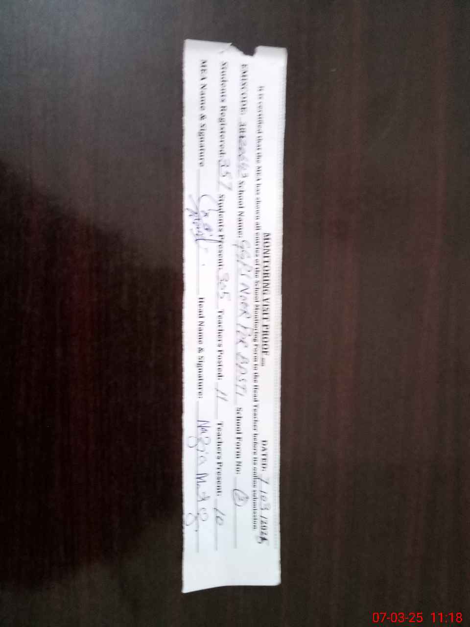 | Attendance Register | Head Teacher | MEA with School | Visit Proof |