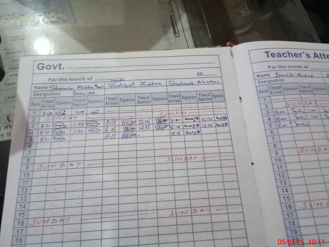 | Name: SH**** AK**** Designation: (School Headmaster's/Headmistress's) PRINCIPAL Phone/Cell Number: 03**** |