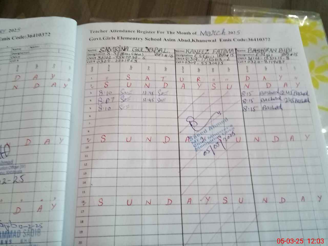 | CNIC | Full Name | Designation | R/C | Absence During Last Calender Month |