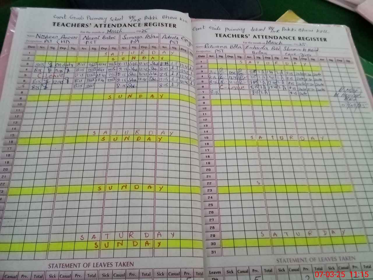 | CNIC | Full Name | Designation | R/C | Absence During Last Calender Month |