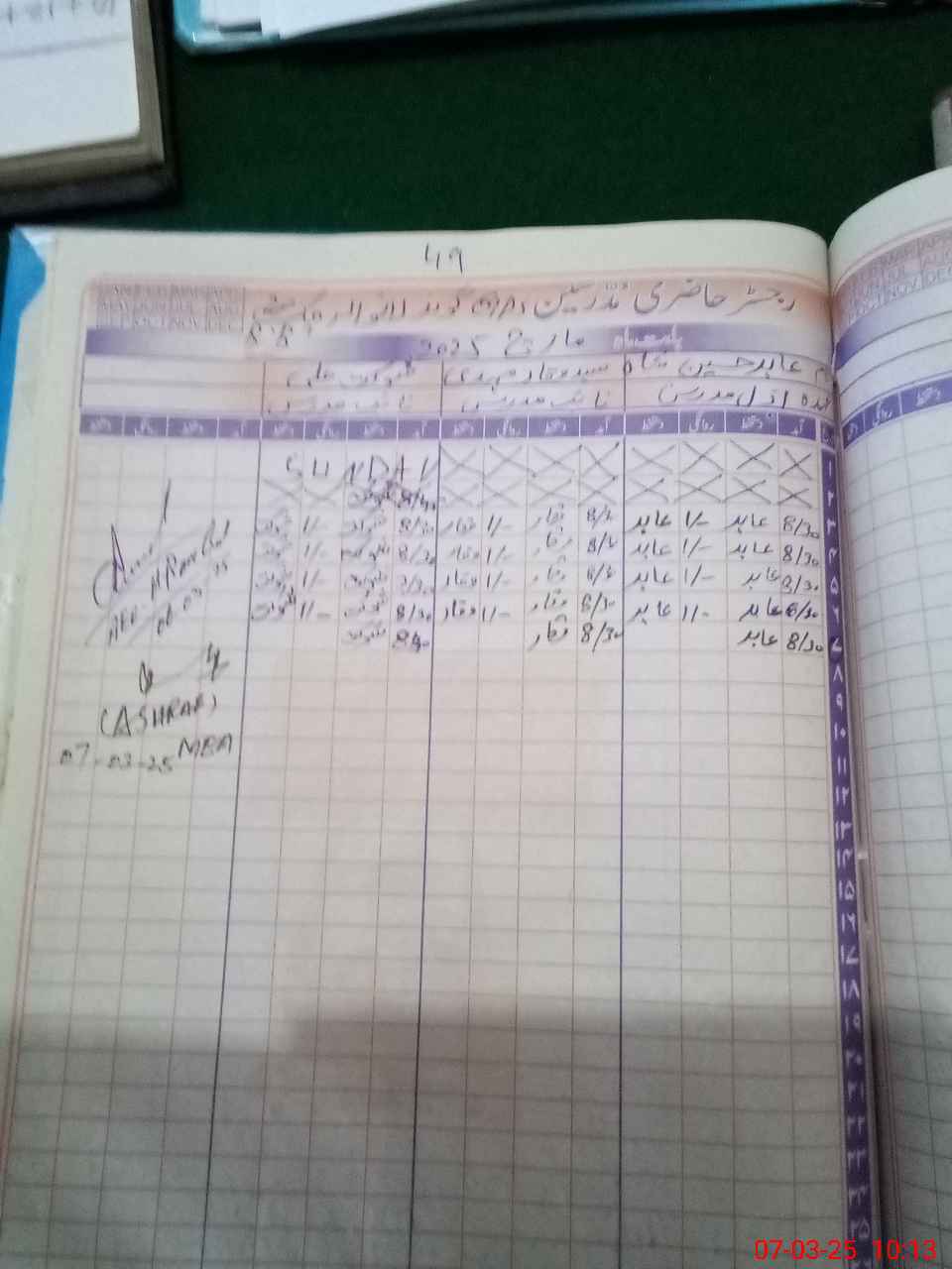 | CNIC | Full Name | Designation | R/C | Absence during last cal. month |