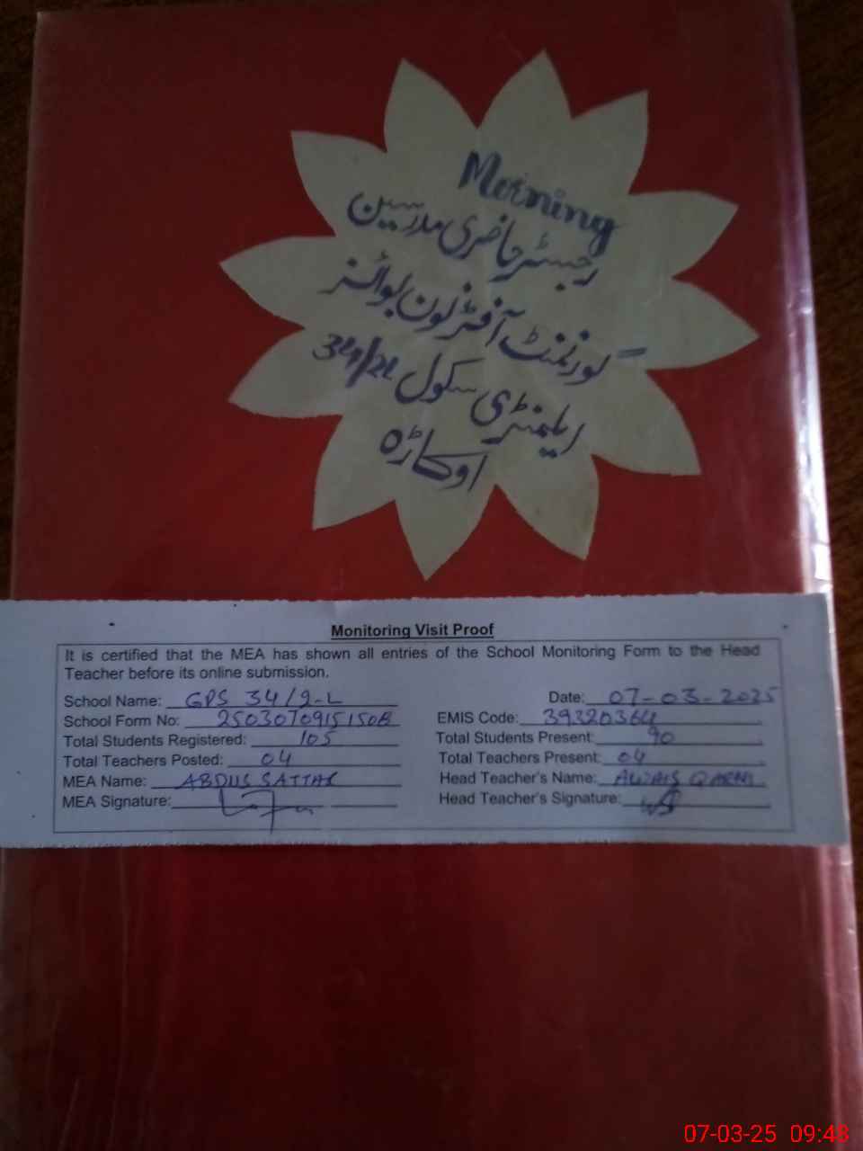 | EMIS Code: 39320364 | Name of School: GPS CHAK 34/2-L | |||
