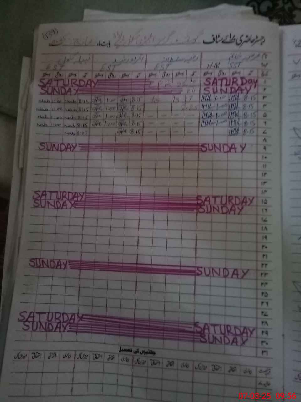 | CNIC | Full Name | Designation | R/C | Absence During Last Calender Month |