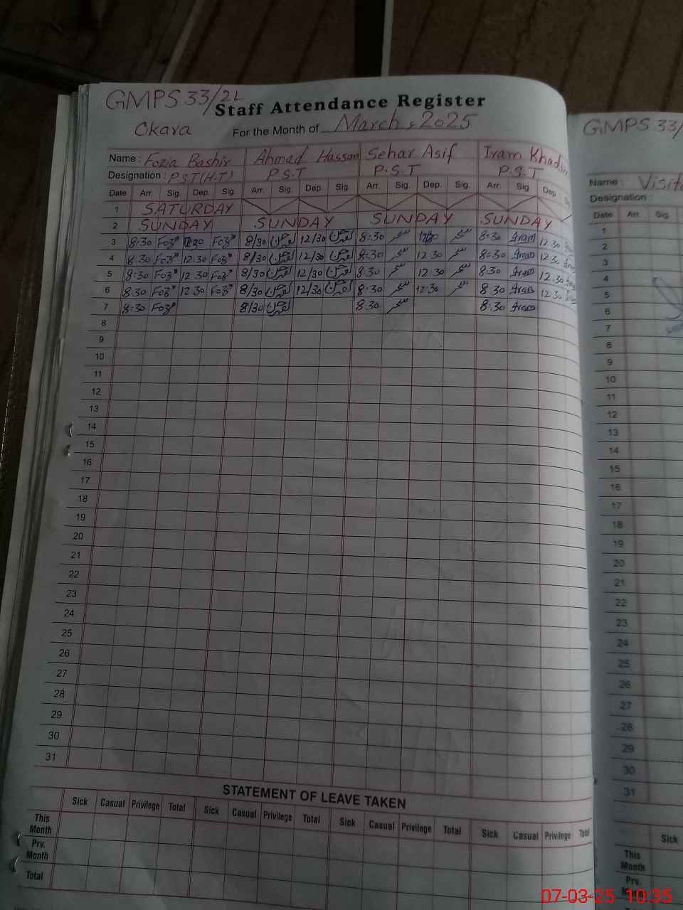 | Leave | Duty | Absent | Maternity | Medical | Ex- Pak |