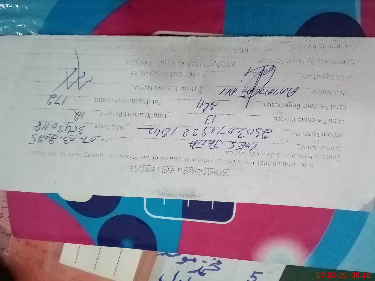 | Certified that this School was Inspected by the Undersigned MEA/DMO Today and the Information Stated Above is as Per Record. | |||||