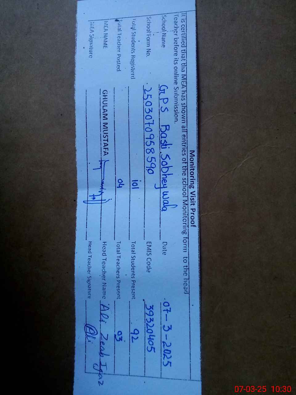 | EMIS Code: 39320405 | Name of School: GPS BASTI SOBHEY WALA | |||