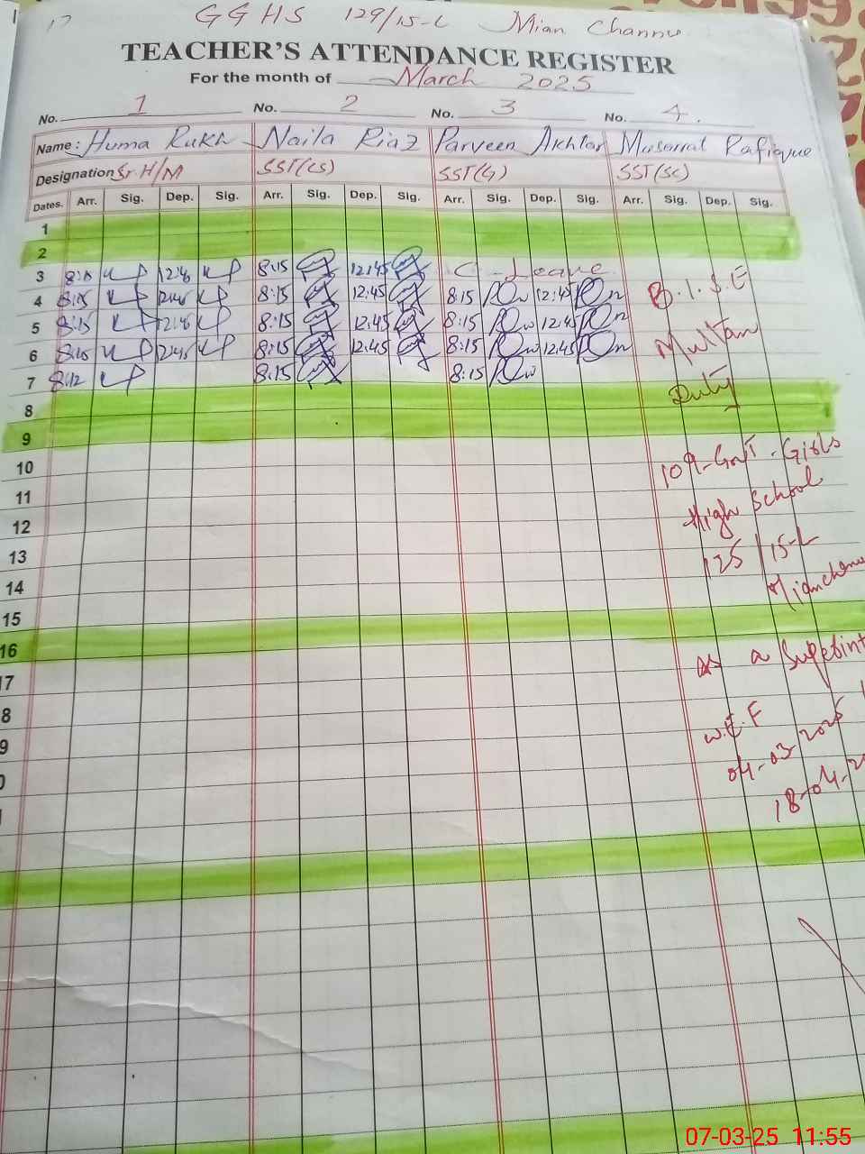 | EMIS Code: 36430042 | Name of School: GGHS 129/15-L, MIAN CHANNU | |||