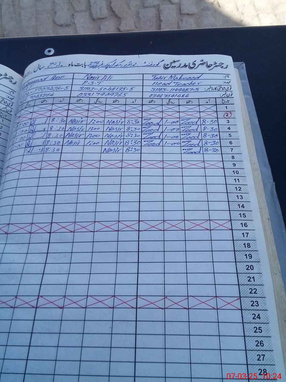 | CNIC | Full Name | Designation | R/C | Absence During Last Calender Month |