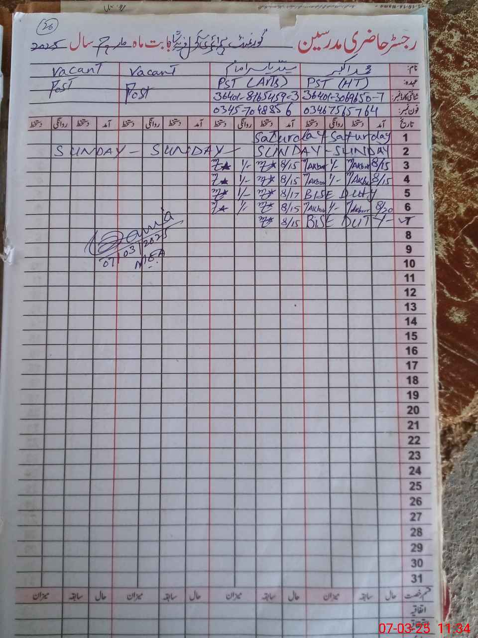 | Name: MU**** AK**** Designation: (School Headmaster's/Headmistress's) PST Phone/Cell Number: 03**** |