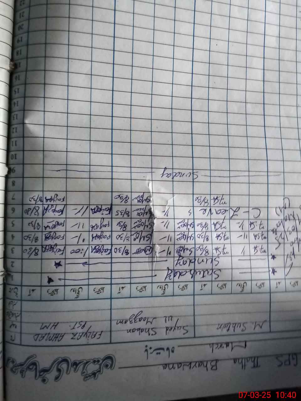 | CNIC | Full Name | Designation | R/C | Absence During Last Calender Month |