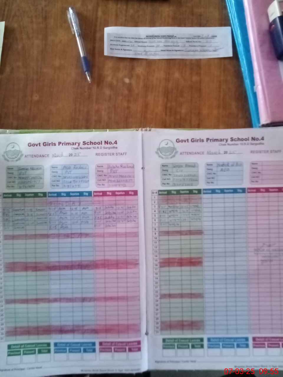 | Attendance Register | Head Teacher | MEA with School | Visit Proof |