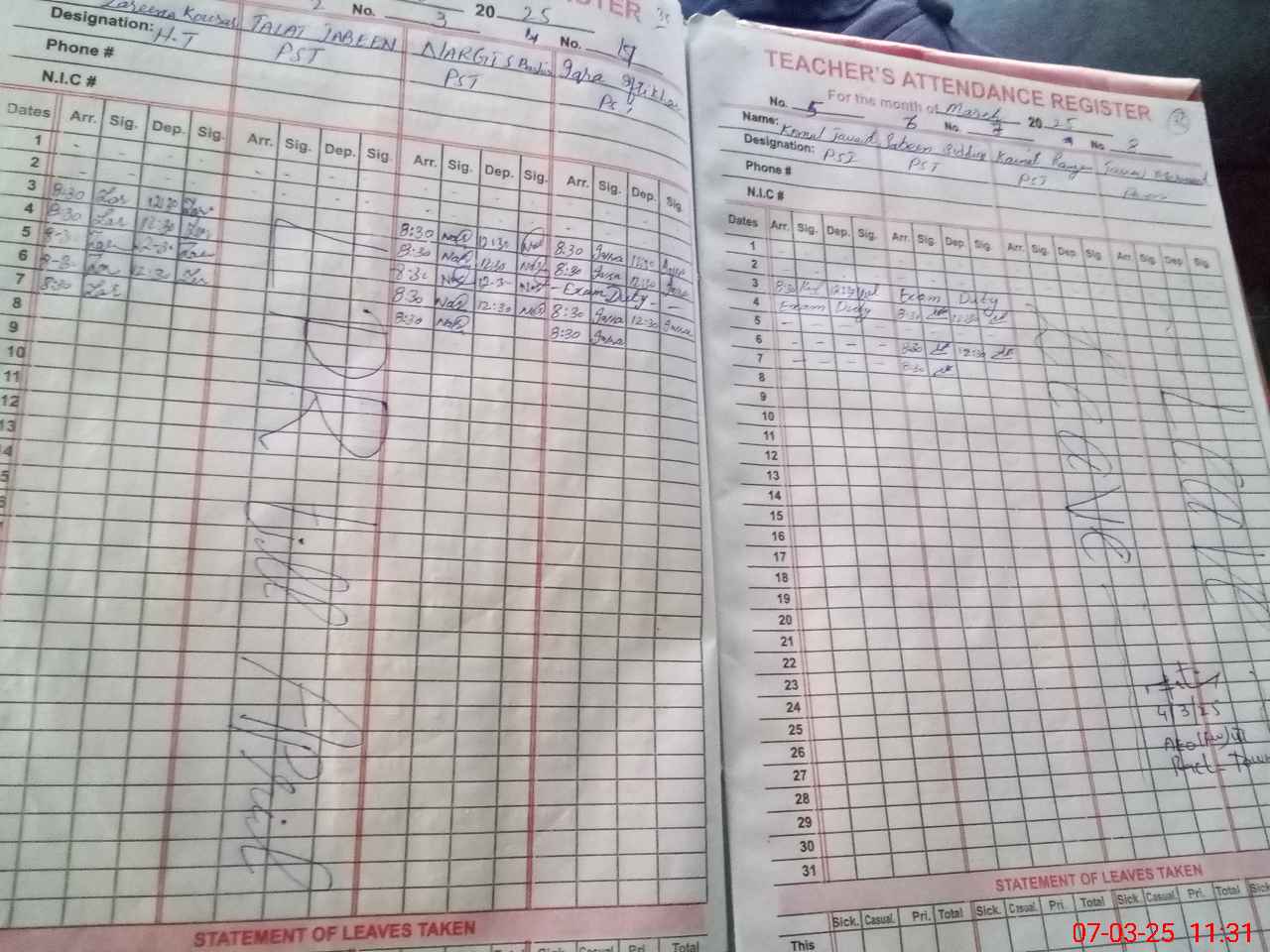 | 35**** | Ko**** Ja**** | ESE | Contract | 0 | 0 | 0 | 0 | 0 | 0 | 0 | 0 | 0 | Exam Duty |