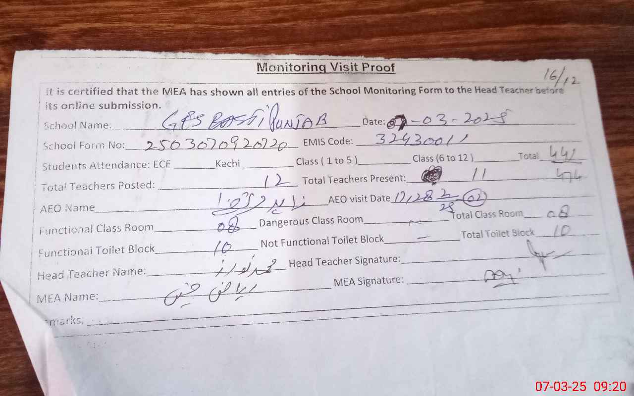 | EMIS Code: 32430011 | Name of School: GES BASTI PUNJAB | |||
