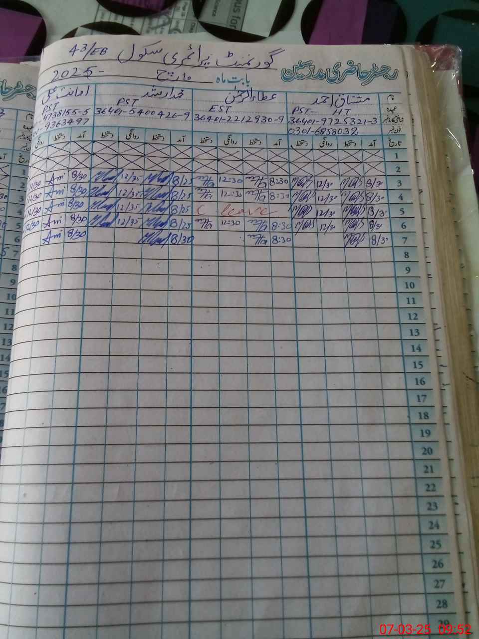 | Name: MAS**** AZ**** Designation: (School Headmaster's/Headmistress's) EST Phone/Cell Number: 03**** |