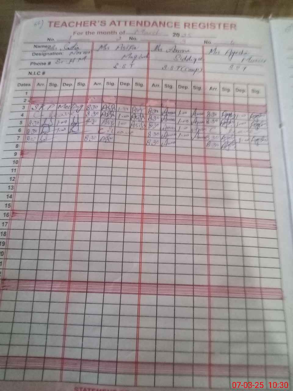 | Name: Sa**** No**** Designation: (School Headmaster's/Headmistress's) S.Headmistress Phone/Cell Number: 03**** |
