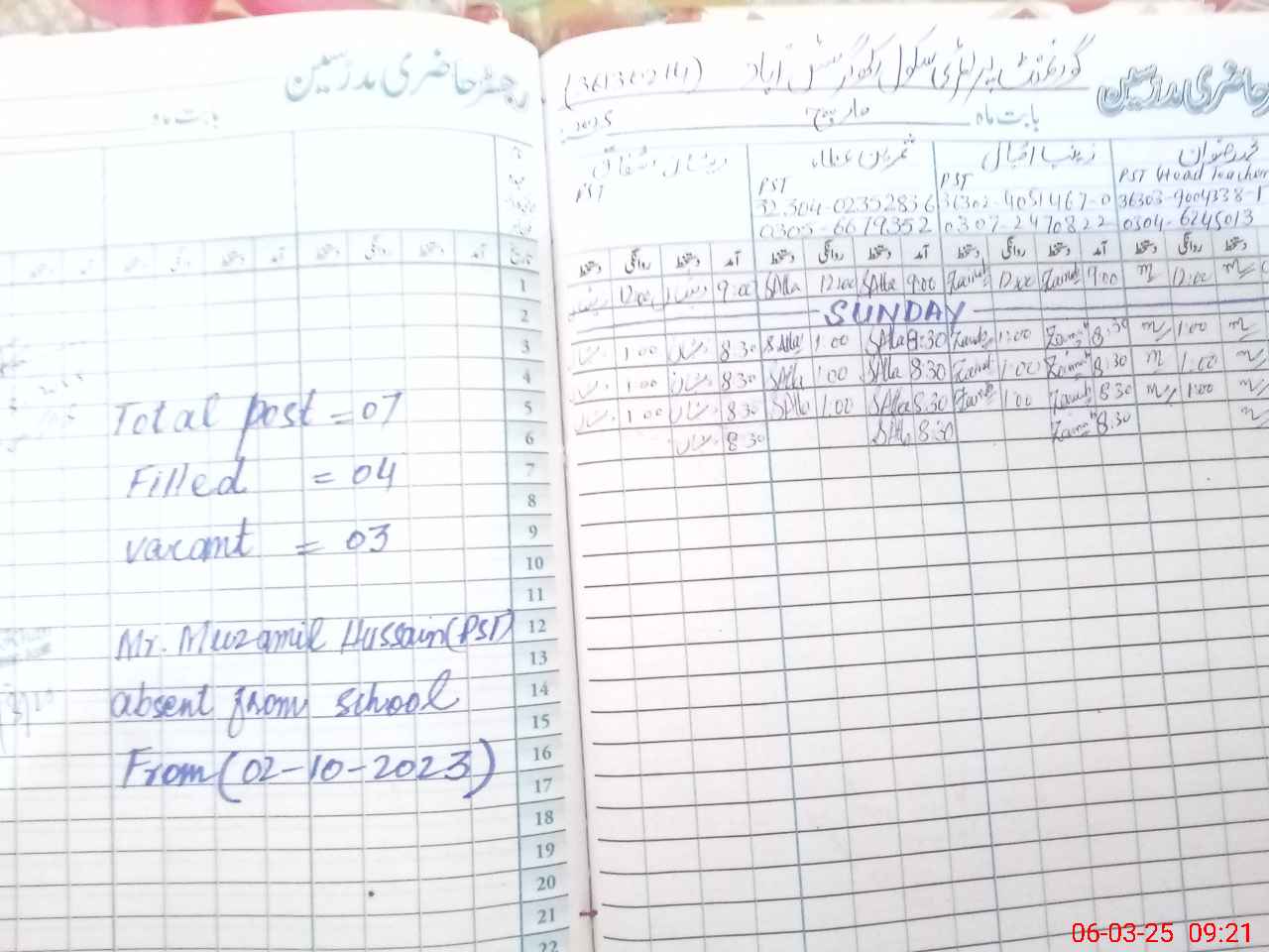 | Name: Mu**** Ri**** Designation: (School Headmaster's/Headmistress's) HEADMASTER Phone/Cell Number: 03**** |