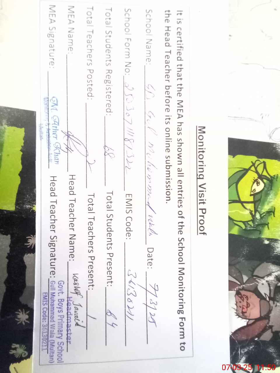 | EMIS Code: 36130211 | Name of School: GPS GUL MUHAMMAD WALA MULTAN | |||