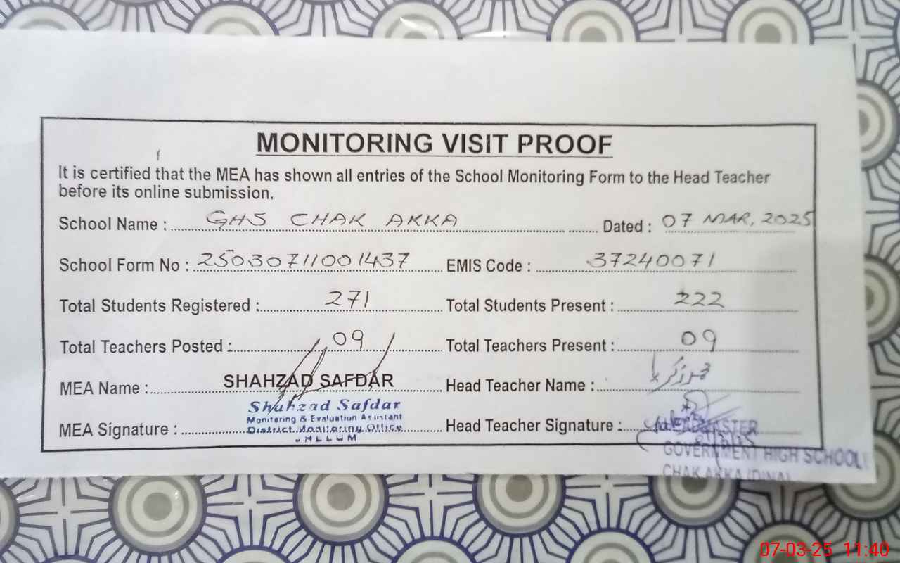 | EMIS Code: 37240071 | Name of School: GHS CHAK AKKA | |||