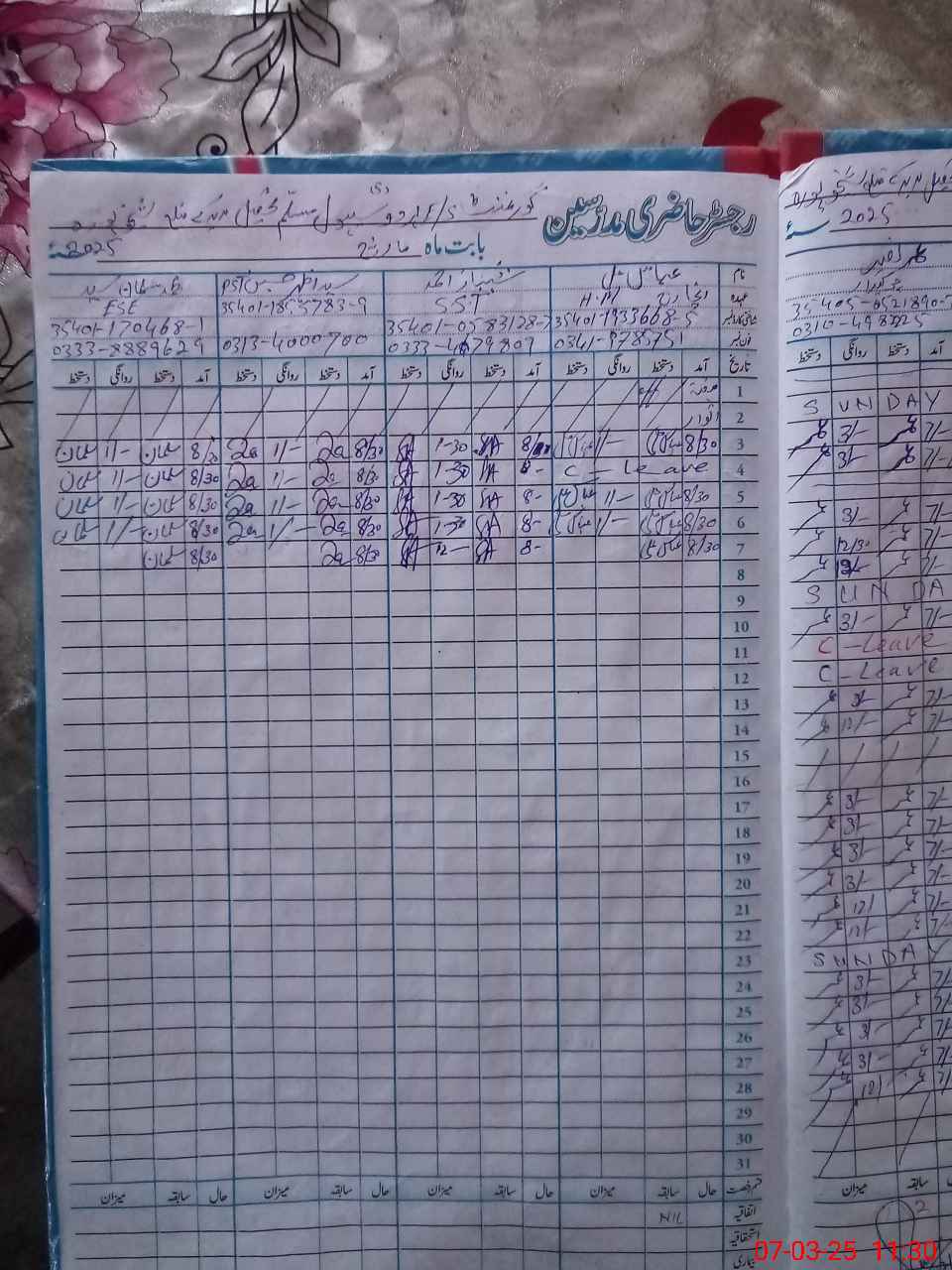 | Name: AB**** AL**** Designation: (School Headmaster's/Headmistress's) EST Phone/Cell Number: 03**** |