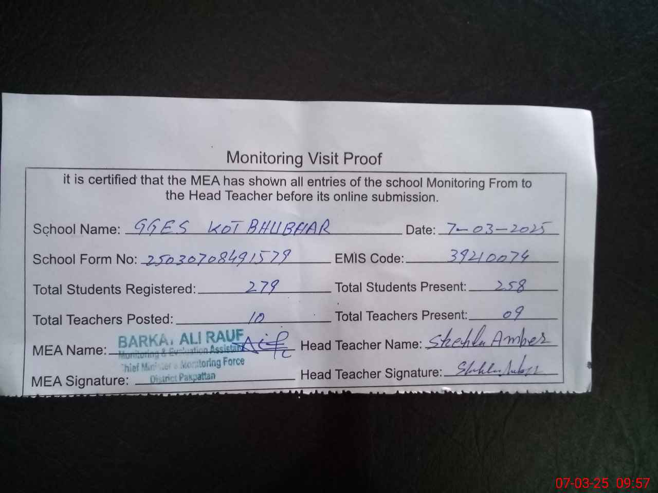 | EMIS Code: 39210074 | Name of School: GGES KOT BHUBHAR | |||