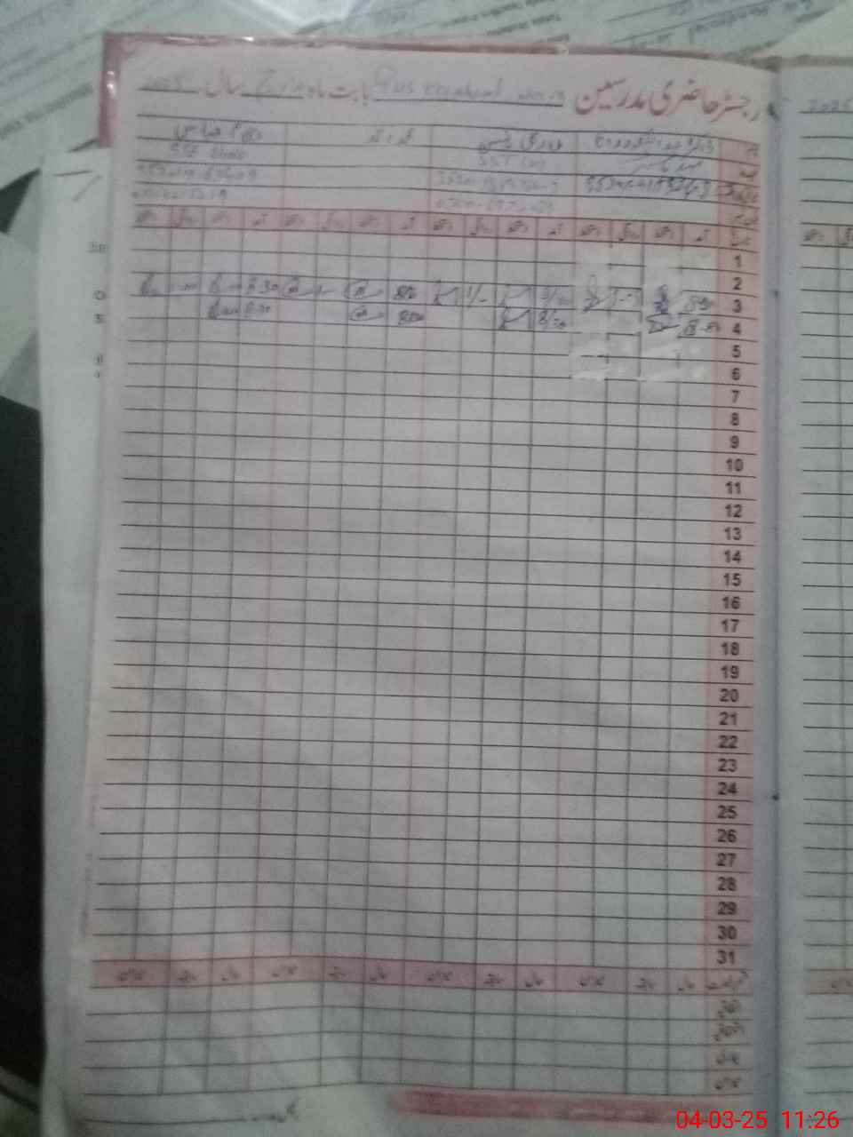 | CNIC | Full Name | Designation | R/C | Absence During Last Calender Month |