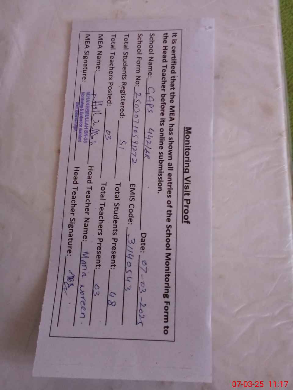 | EMIS Code: 31140543 | Name of School: GGPS CHAK NO. 442/6-R | |||