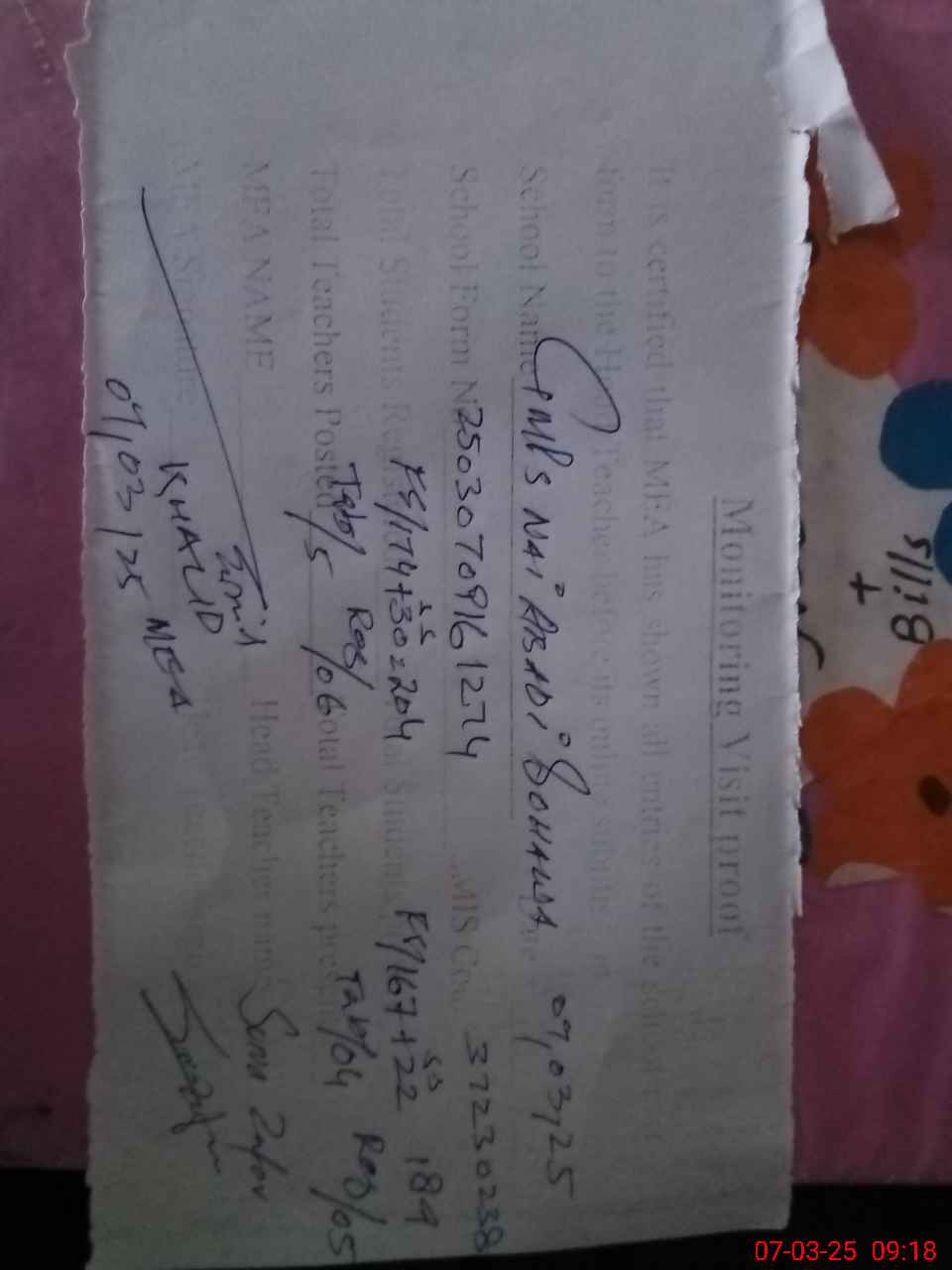 | Name: Su**** Za**** Designation: (School Headmaster's/Headmistress's) PST Phone/Cell Number: 03**** |