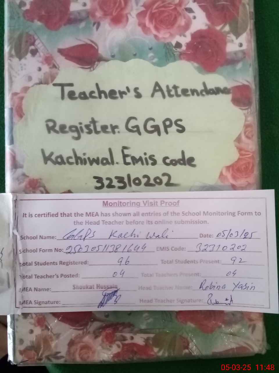 | EMIS Code: 32310202 | Name of School: GGPS KACHI WALI | |||