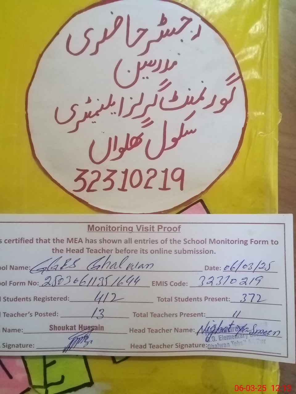 | EMIS Code: 32310219 | Name of School: GGES GHALWAN | |||